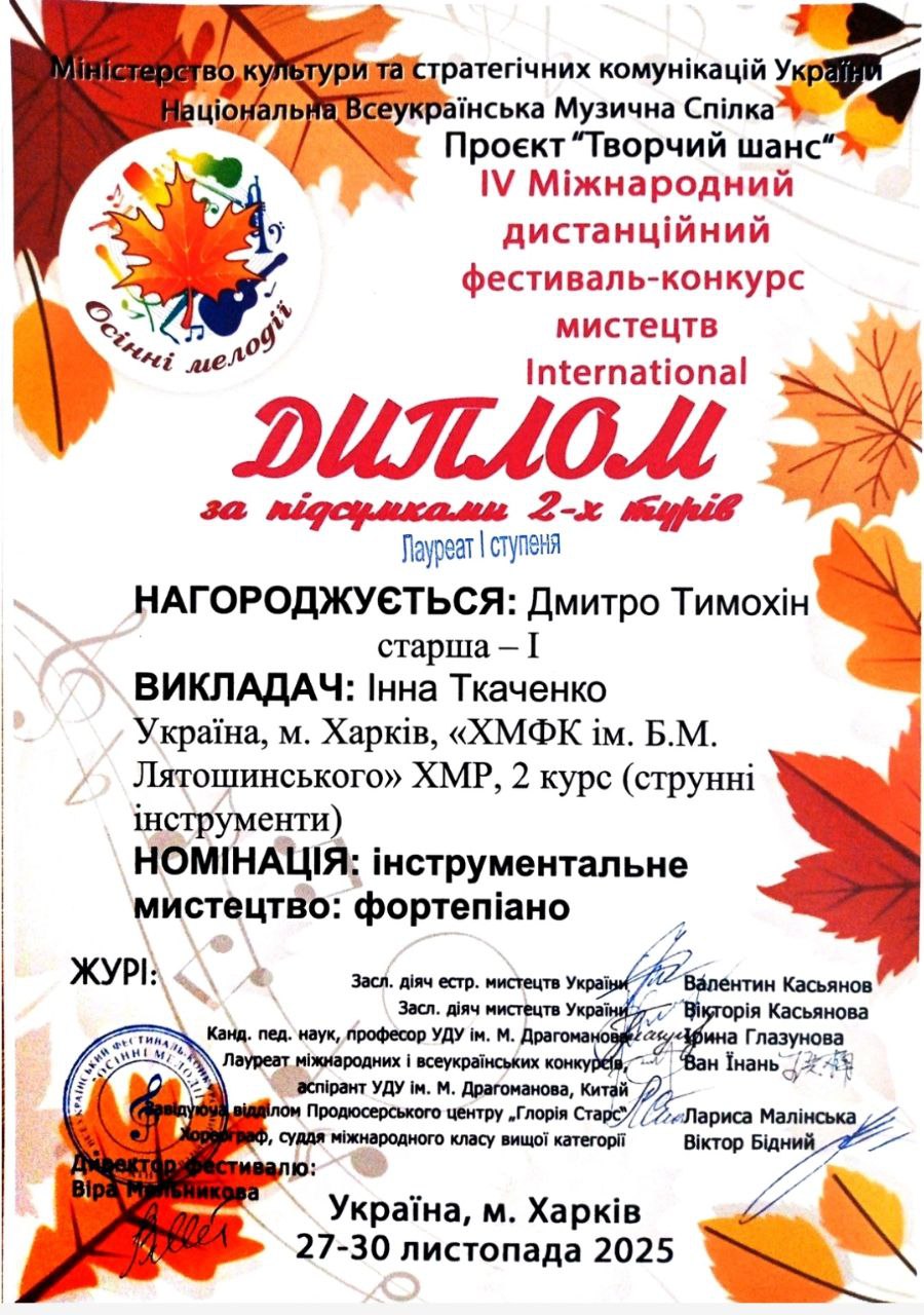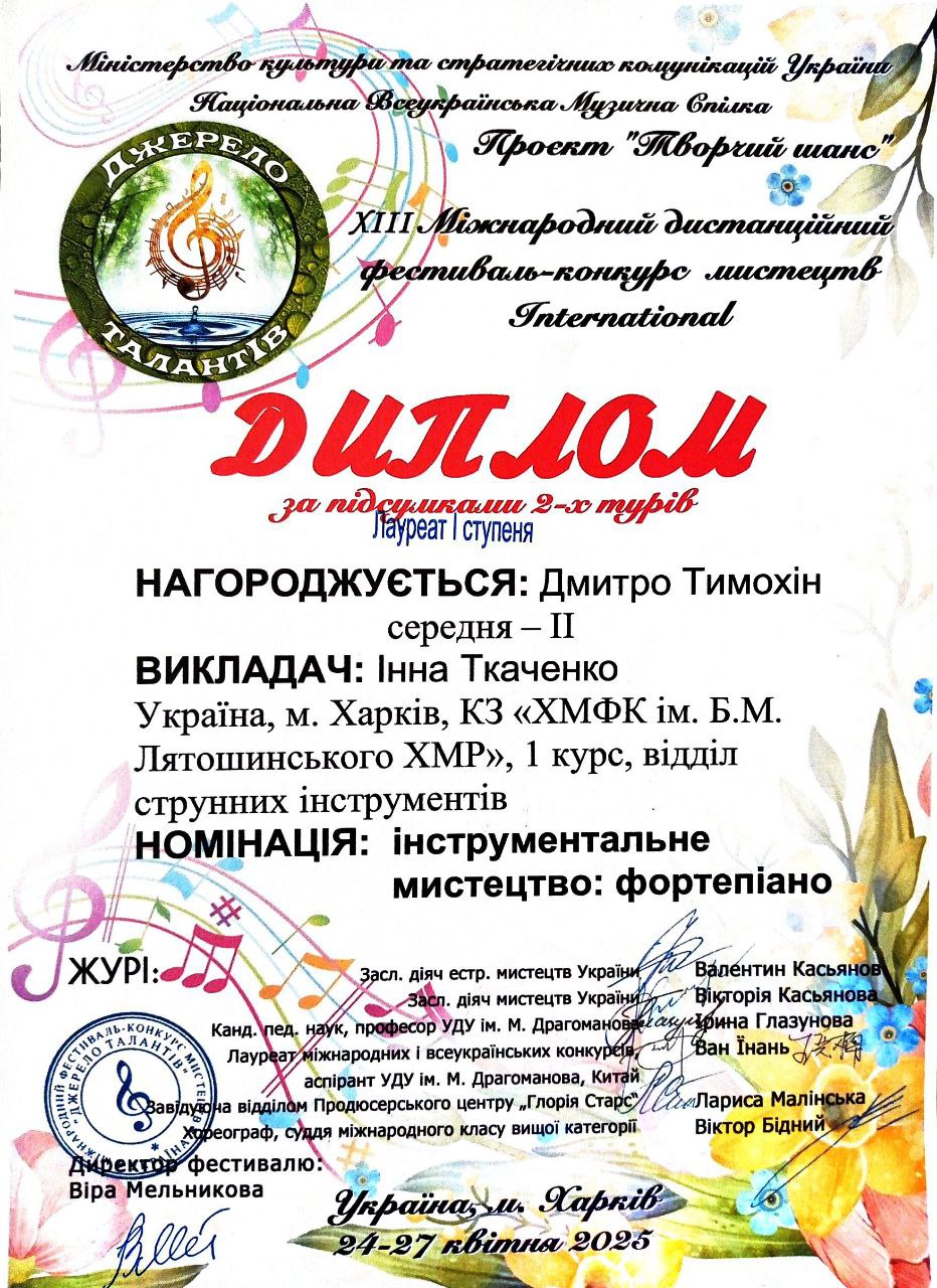 Завершується навчальний рік, який був непростим, але водночас результативним і натхненним. Попри всі виклики, нас об’єднувала Музика — джерело сили, єдності та творчості.