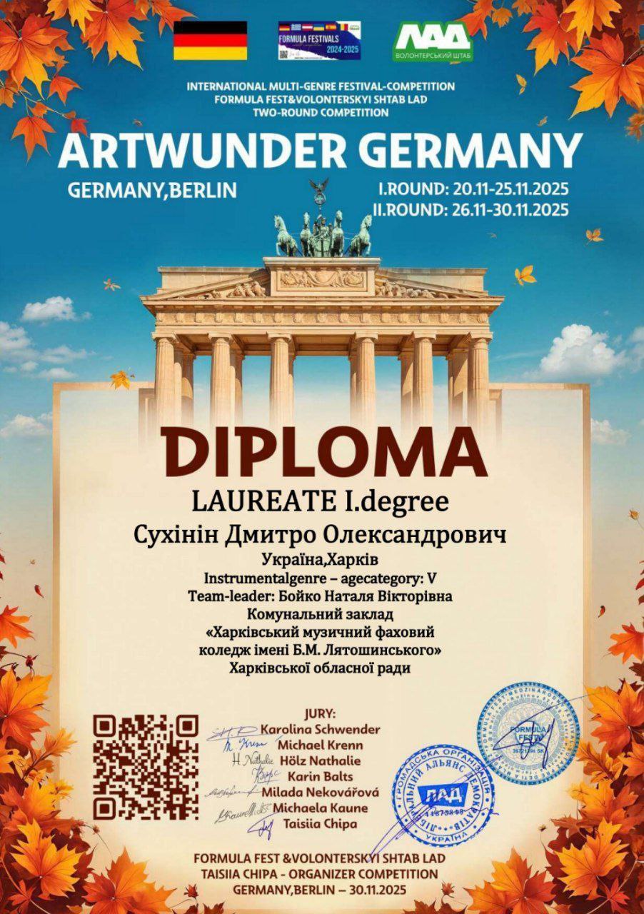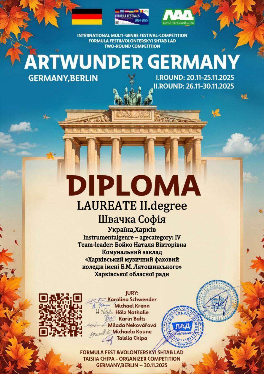 Мрієте про професійну сцену або майстерне володіння інструментом ? Запрошуємо абітурієнтів та їхніх батьків на День відкритих дверей Харківського музичного фахового коледжу ім. Б.М. Лятошинського, який відбудеться у дистанційному форматі.